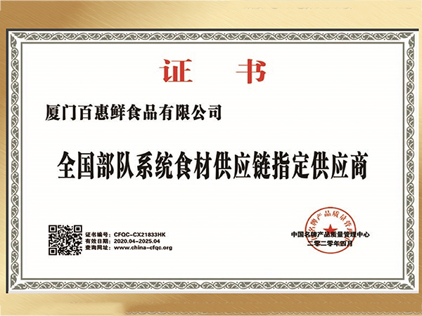 部隊(duì)系統(tǒng)食材供應(yīng)鏈指定供應(yīng)商