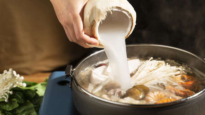 2.兩瓶椰子水倒進鍋里